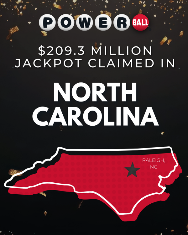 RALEIGH – The lucky lottery player who won Wednesday’s Powerball jackpot of $209.3 million claimed the prize on Thursday at lottery headquarters in Raleigh.