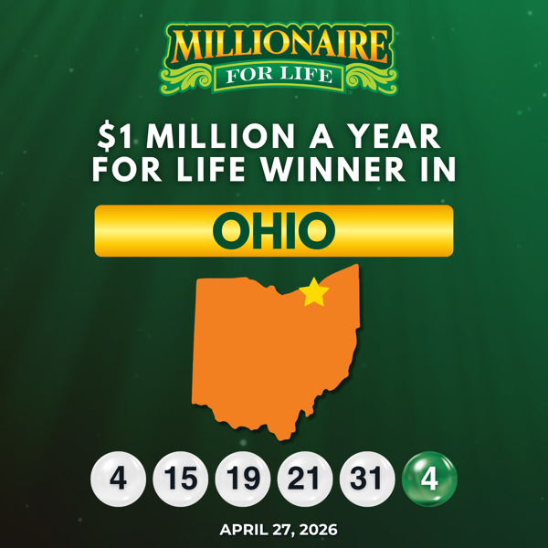 CLEVELAND – An Ohio Lottery player is celebrating a win for life on Millionaire for Life, the first jackpot winner since the game launched in February.
